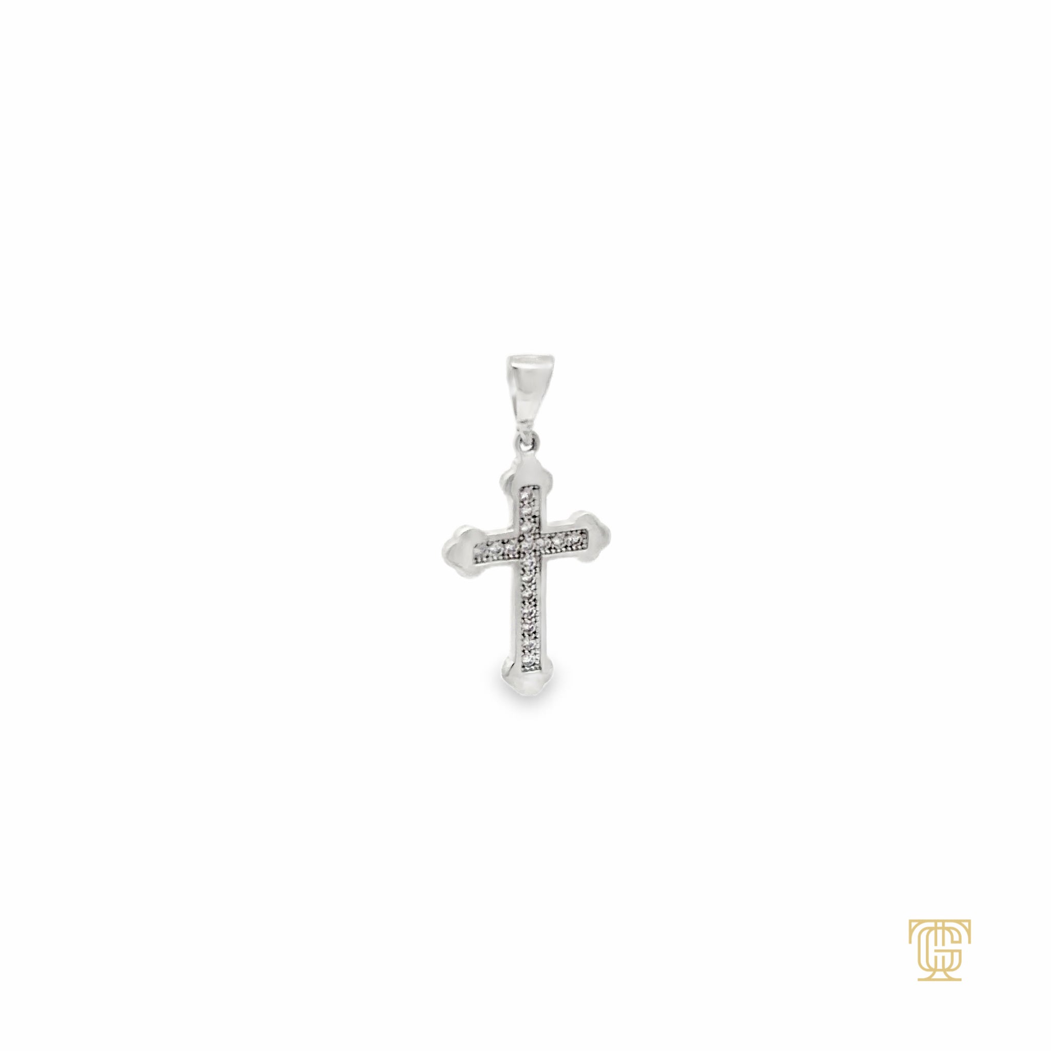 WHITE GOLD ORTHODOX CROSS WITH CUBIC ZIRCONIA