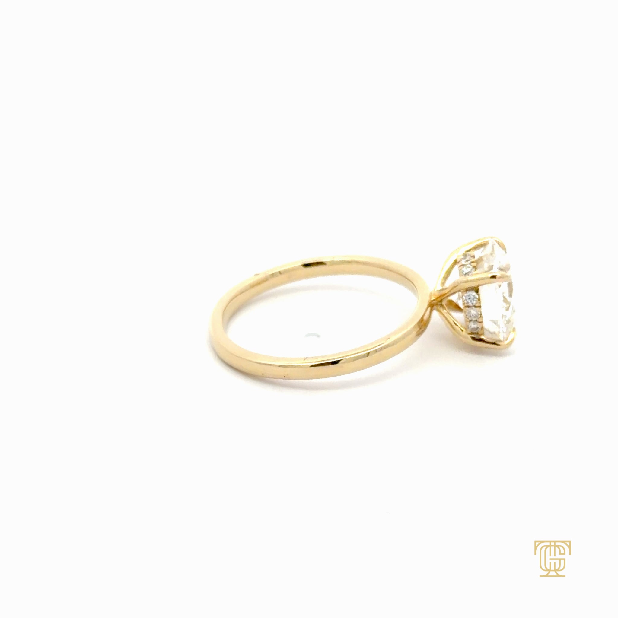 ONE ROUND BRILLIANT CUT LAB GROWN CENTRE DIAMOND WITH 12 ROUND BRILLIANT CUT LAB GROWN DIAMONDS ON SIDE